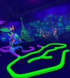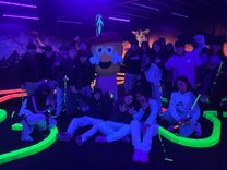 Goolfy ofrece un entorno de aprendizaje inmersivo único en Santiago, caracterizado por su infraestructura de "Mini Golf Black Light" (luz negra). El recinto cerrado presenta un circuito de 18 hoyos diseñado bajo una temática tridimensional fluorescente. Desde una perspectiva pedagógica, el espacio funciona como un laboratorio práctico de física y motricidad. La iluminación ultravioleta permite observar fenómenos de luminescencia y fluorescencia en tiempo real, ofreciendo un estímulo visual potente que capta la atención inmediata del estudiante, facilitando la concentración en un entorno controlado y seguro.
